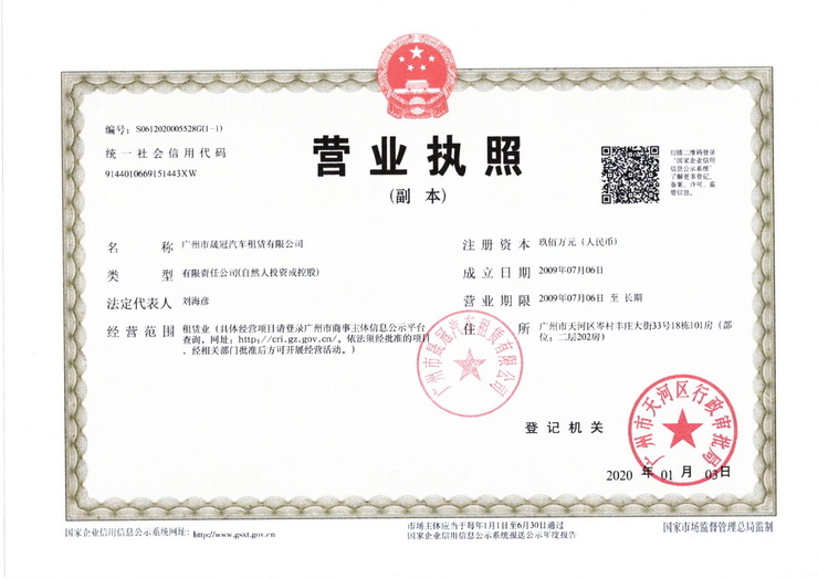 廣州市晟冠汽車租賃有限公司為一家通過廣州汽車租賃行業資質認證的專業汽車租賃公司。成立于2006年8月,是一家實力雄厚的專業租車公司單位。晟冠租車為外資企業、合資企業、國內政府機關、企事業單位、中外賓客、商務人員以及個人提供長期或短期的行政租車、商務租車、公務租車、婚禮租車、會議接待租車、大型活動賽事租車、機場接送租車、旅游租車、活動租車、上下班接送等汽車租賃服務?!?/div>